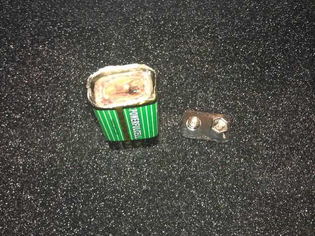 Encontrar una pila vieja y lo desarma. Sólo necesitas la parte marcada en la imagen. Ahora soldar a otro los dos pines. Utilicé una plancha de cobre, pero nada puede hacer el trabajo.