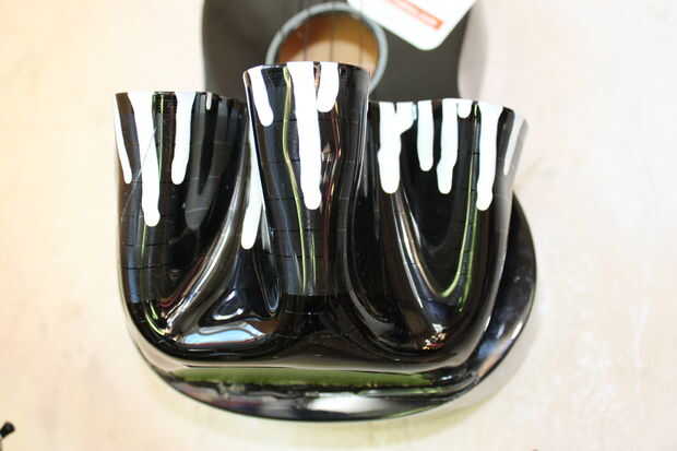 Pero usando un tazón de fuente no vale la pena llamarlo una "fuente de inspiración". Así que decidí hacer un disco de vinilo del tazón de fuente, cortar la mitad y pegarlo a un cuerpo de ukelele. A continuación, añadí algunas gotas (una pegatina de Instructables) y et voilà el tazón de fuente ha recibido incluso un aspecto decorativo y creativo.