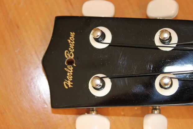 Ya que queremos colgar en la pared, tenemos que perforar un agujero en el cabezal. También puede utilizar un soporte de pared o colocar sobre un soporte de ukelele.