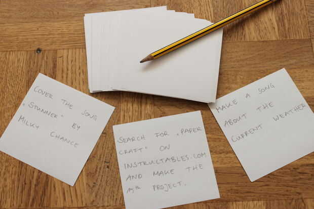 Aber der wichtigste Schritt fehlt noch. Um eine /Echte "Quelle der inspiración" zu machen, müssen wir sie erst mit niedergeschriebenen Ideen, Aufgaben, Zitaten, etc. füllen. Dabei sind keine Grenzen gesetzt. Es ist nur abhängig davon, wer du der de oder ist Beschenkte. Wenn die Inspirationsquelle für einen Musiker sein soll, dann könnte man Aufgaben aufschreiben, die das Songwriting zu verschiedenen Themen vorschlagen. Schau mal 2.Churo zweite Bild zur inspiración.