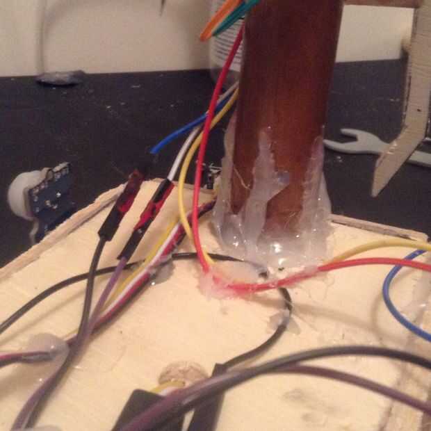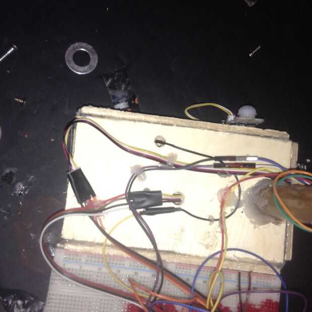 Paso 2: tomar el tamaño del tablero de la mesa del pan y pegamento caliente a la parte inferior de la caja. Luego tomar el pan y jale la pegatina de la parte inferior y pegarlo a la Junta que tenemos justo al lado de la caja. entonces debe tener un modelo completo solo sin los cables, sensores y edison