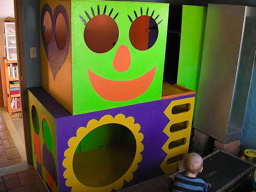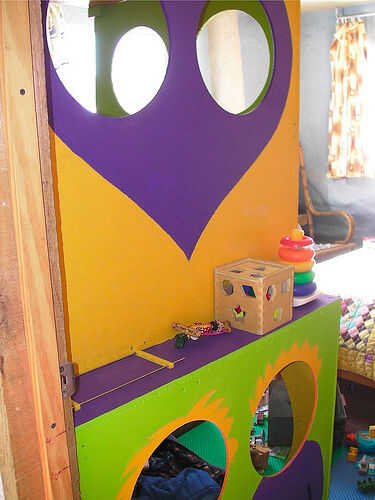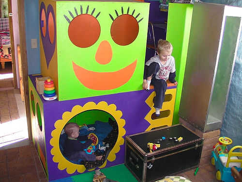 La fortaleza de diversión cuesta poco menos de $200 y duró tres días (uno para cortar, para armar, uno para pintar). Es una casa de juego de dos pisos con un dormitorio (donde ponemos un colchón) y estantes en la parte inferior y una sala de juegos y escritorio en la parte superior, aunque el diseño se puede ajustar para adaptarse a sus necesidades. Y no te asustes por la longitud de estas instrucciones, son mucho más complicadas de leer que van a hacer!