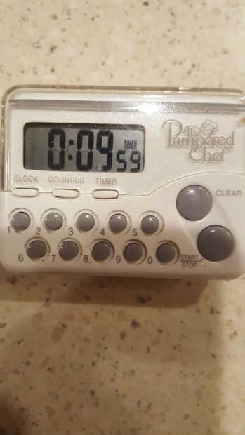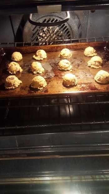 Una vez terminado el horno precalentando a 375 grados farenheight agregue el primer lote preparado de galletas y un temporizador de 9 a 11 minutos.
