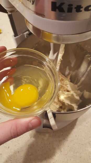 Es útil transferir el huevo a un recipiente antes de agregarlo a la mezcla porque en el caso de un pequeño trozo de cáscara de huevo cae en es mucho más fácil de quitar.