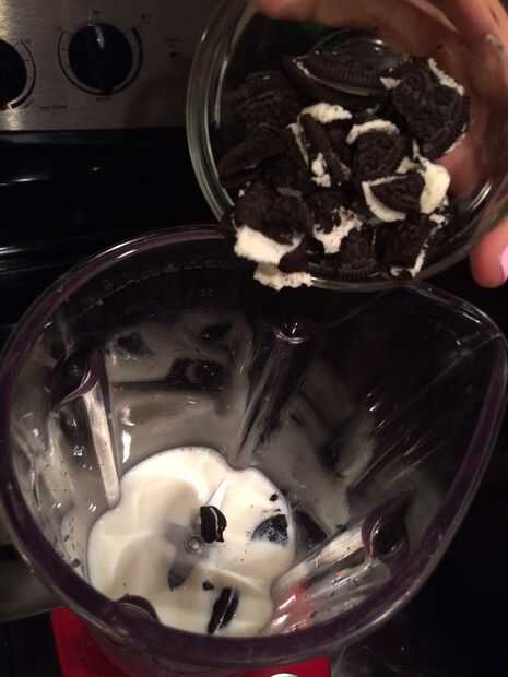 a continuación, añadir los trozos de galletas Oreo en la licuadora.