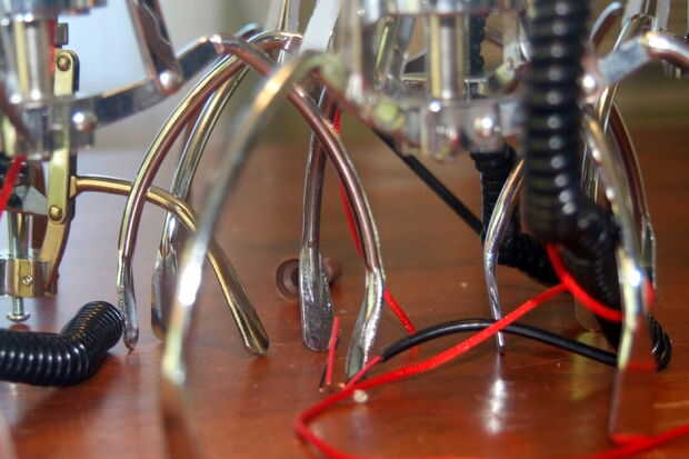 La garra del imán es un proyecto cinético fácil, simple. Se trata de un imán circular colgado de una cadena que se coloca directamente sobre varios otros imanes que repeler las fuerzas por lo que crea un movimiento continuo. Realizados por los alumno
