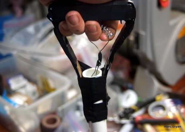 Rosca el cable a través de un resorte y trenzado en un lazo para hacer un pequeño bucle para tirar... mira la foto...