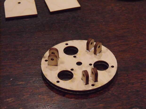 Pegar las piezas más pequeño 6 en la placa base, asegurando que son perfectamente verticales.