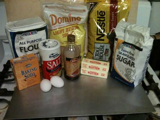 Actualmente de Nueva Inglaterra va a hacer la mejor galleta de chispas de chocolate siempre "Nestlé Toll House" cookie de estado de Massachusetts. Nadie tiene todavía que hacer una copia de esta receta que es en la parte posterior de cada bolsa de bocados Semi-sweet de la Nestle (es el mismo convento). Así que no necesito publicarlo. Mira las fotos si no quieres por las fichas. El único cambio que va a hacer es que no estoy agregando las tuercas. Se trata de un movimiento de ahorro de costes un no debe afectar los resultados.