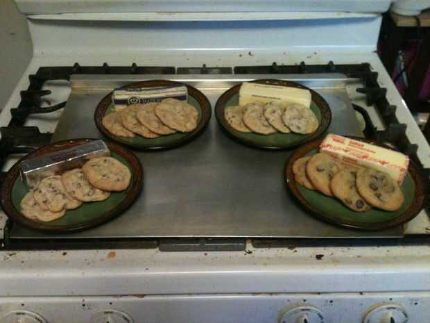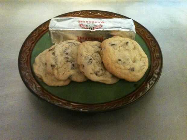 Bien ahí lo tienen.  La línea inferior Lea el paquete quieres mantequilla o margarina no difundir aceite de para galletas buena.   La única diferencia entre la margarina y la mantequilla era el dorado pero podría han cocinado la margarina los más o utilizar una placa para horno más oscuro.   Pensaré dos veces antes de agarrar las baquetas más baratas en el caso en el mercado de la cena.  se observo que tierra-0-lagos era el mismo precio que la mantequilla y como el porcentaje de aceite desciende el cheeper los palillos.  (después de todos su servicio de pago de agua)