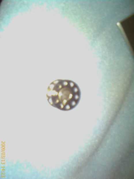 Ahora ¿Dónde está la bobina? Debe estar ubicado debajo de una placa por donde está la aguja. (Mi foto tiene que ser hecho girar para que el fondo de imágenes reales es el de la izquierda, lo siento.) (Foto 2)