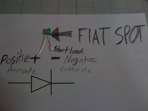 Otra cosa LEDs son raros sobre es su positivo (+) y las piernas negitive (-). LED significa diodo emisor de luz. Puesto que un diodo hace poder seguir sola su camino, tiene que ser en la forma correcta para que funcione. hay algunos trucos para encontrar lo que es el annode (+) y cuál es el cátodo (-).