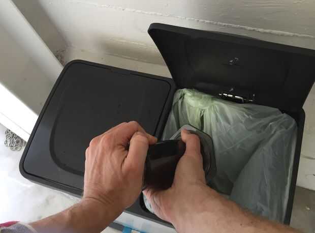Posición Aeropress sobre basura o compost y empujar émbolo en expulsar el "puck" de café molido.