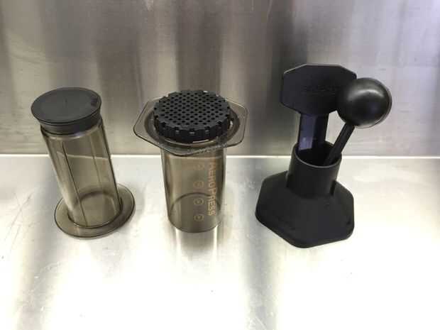 Consejo: Para eficiencia, me tiro agitador en el fregadero después de revolver, arrojar tapa de filtro fregadero después de zambullirse, luego expulsar puck café, luego traer Aeropress para fregadero - de manera puedo enjuagar todas las piezas a la vez.