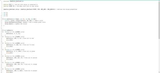 Tira de Adafruit_NeoPixel = Adafruit_NeoPixel (cuenta, PIN, NEO_GRB + NEO_KHZ800); define las propiedades de las tiras