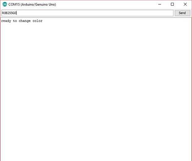 'R' está parado para el rojo así que si usted envía 'R255' rojo se establecerá a 255