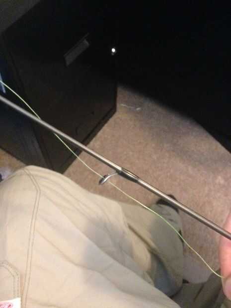 Tome la línea y ejecutar hacia abajo a través de las guías en la varilla a su carrete.