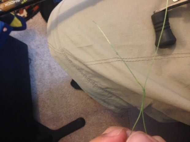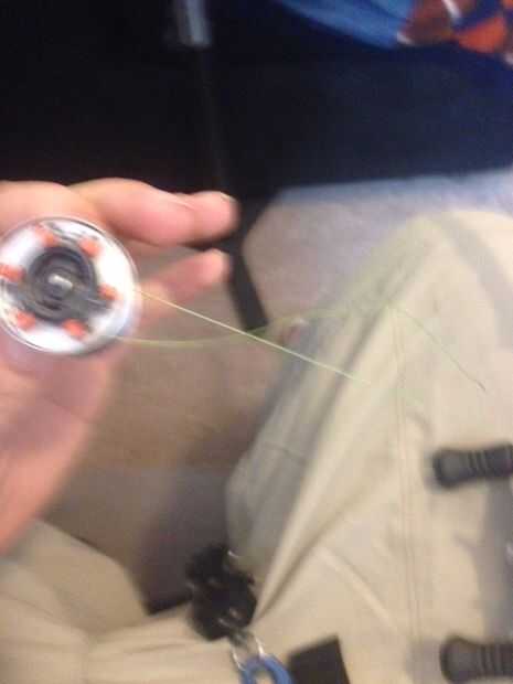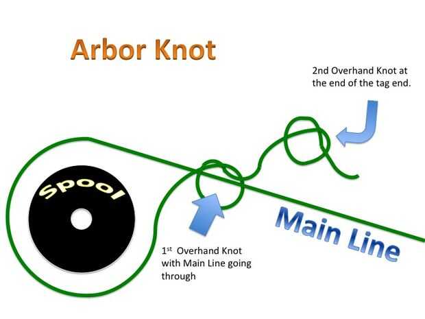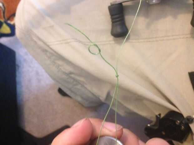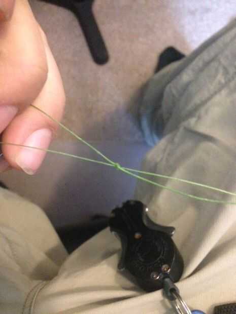 6. Tire de la línea principal hasta el primer nudo se agarra el carrete, te darás cuenta el segundo nudo se deslizará después al primer nudo