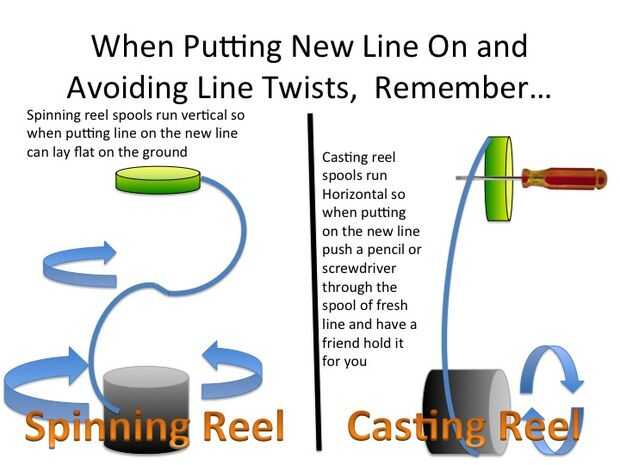Cómo la línea sale de su carrete es cómo la línea se debe poner en su línea. Esto evita que la línea giros y contragolpes.