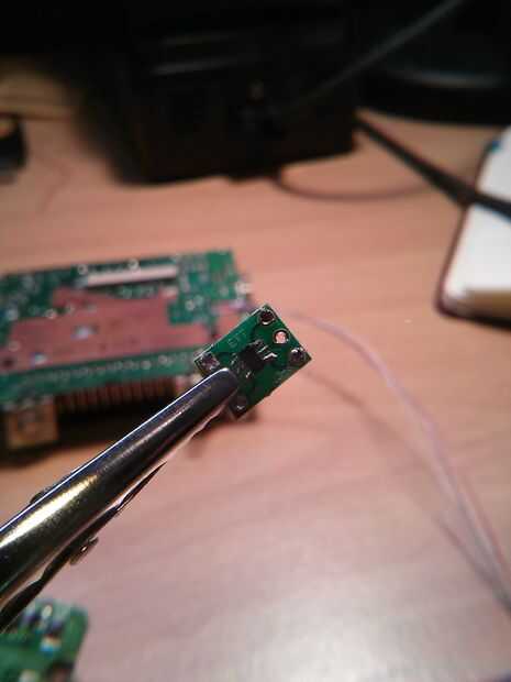 Una vez que el chip y la Junta han reunido entre sí, vamos a tener que dar este adaptador algunas piernas. En mi caso, utilicé izquierda sobre recortes de plomo, pero un jefe de algún tipo sería mucho más 'por el libro.