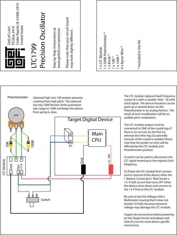 fueron escritos hace casi 4 años! Por supuesto desde entonces el Ministerio de defensa ha sufrido algunas leves mejoras, pero el diseño básico sigue siendo el mismo. En torno al todo poderoso LTC1799, un oscilador de precisión, el mod tiene como objetivo proporcionar una frecuencia de reloj ligeramente mayor o menor que el Gameboy correr más rápido o más lento, respectivamente. Usando un simple circuito el LTC puede producir ondas desde cualquier lugar de 1kHz a 33MHz y con un recipiente adicional podemos escanear aunque van permitiendo pin punto velocidad! Como se mencionó anteriormente, el LTC es super pequeño! Como es sólo en un paquete SMD y unos 4mm de largo, romper la lupa y vamos a empezar!