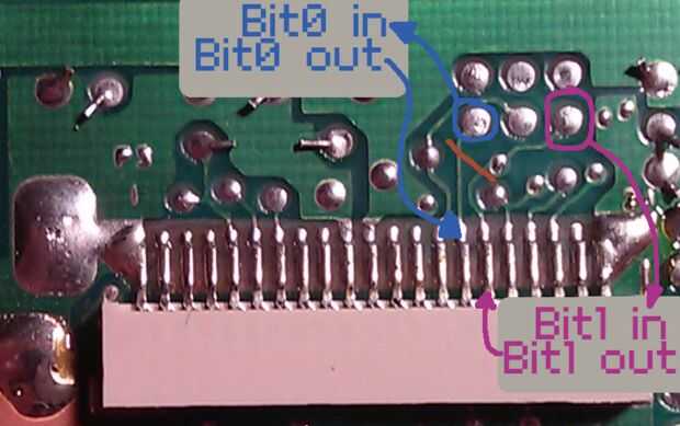 El 74hc86 se compone de cuatro puertas XOR: utilizaremos sólo dos de ellos sin embargo. Si la señal va en ambas entradas de la compuerta XOR, la salida va a salir negativa, mientras que si sólo uno es impulsado a salir positiva. Esto significa que si potencia una de las entradas (esto es lo que están haciendo el PWRs) se invierta la señal proveniente de la Junta. el Biverting viene si 'corta' estos PWRs a tierra-que es lo que el interruptor va a hacer! Finalmente conectando la salida directamente al conector de la pantalla, podremos a bivert la pantalla!