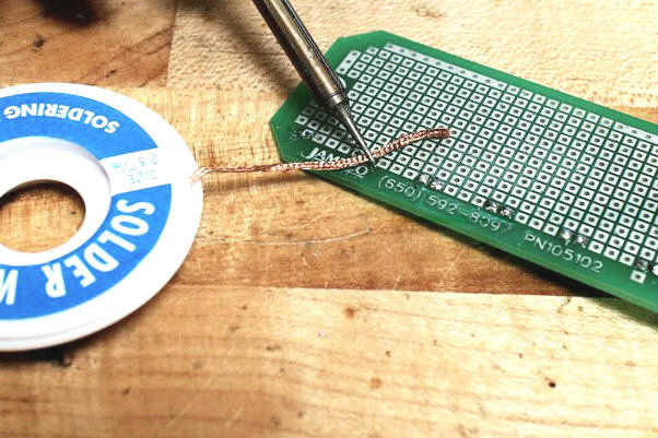 2. Si su mecha de soldadura no tienen flujo, sería una buena idea agregar fundente a la sección que vas a usar para una limpia remoción.