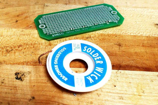 Trenza de desoldar o mecha de soldadura, es un agradable método desoldadura esencialmente empaparse de soldadura no deseada. Viene en una bobina de trenzado juntos hilos de alambre. Porque cobre conduce calor bien y la soldadura es atraído por el calor, calentando la trenza se puede dibujar la soldadura la pieza y la trenza. Algunos desolering trenza viene con flujo en su interior, que hace que sea mucho más fácil y limpia para eliminar una parte. Si tu trenza de soldadura no contiene el flujo, puede aplicarlo por inmersión de la sección de la trenza que va a utilizar en el flujo. Aquí es cómo usarlo:
