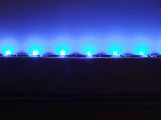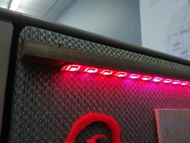 En mi oficina me quiso poner luces del LED en mi cubo, pero no había un montón de opciones.  Yo los LEDs directamente a algunas piezas del casco redondo y mounted aquellos alrededor del perímetro de mi cubo.