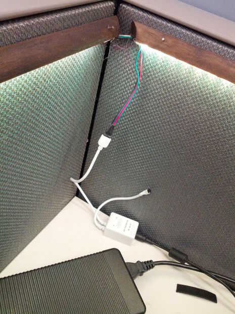 Cuando tienes más flexibilidad intenta montar LEDs ligeramente fuera de la pared.  Si están demasiado cercanas puede ver las sombras entre los LEDs individuales pero si espacio tira ligeramente de la pared te sale un bonito, incluso resplandor.  cuenta 300 tiras vs 150 cuenta tiras ayuda con esto también.