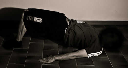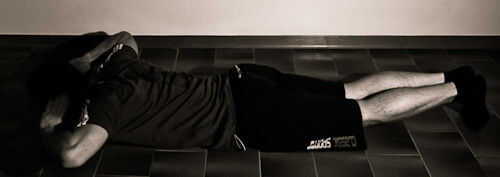 En posición plana en el suelo boca abajo, extiende los brazos delante de usted por encima de su cabeza. Levante un brazo y la pierna opuesta al mismo tiempo, bajarlos y realizar otra vez con los miembros opuestos.
