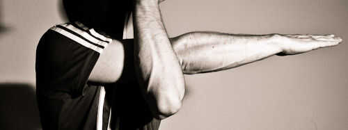 Pie derecho poner el brazo derecho recto a través de su cuerpo apuntando hacia la izquierda, cerradura de la izquierda del brazo por debajo del codo derecho y empujarlo más cerca a su pecho, gira la cabeza hacia la derecha. Repita con los brazos enfrentados.