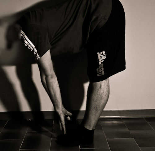 También puede realizar un ejercicio similar mientras esté parado, llegando a los pies con los brazos en cuanto puedas.