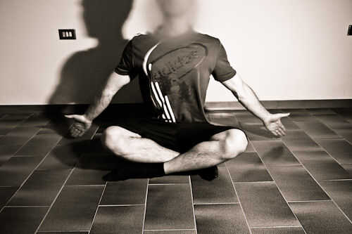 Sentarse en el suelo con las piernas cruzadas y la espalda recta, descruce las piernas pero mantener las rodillas casi en el piso y pon tus pies para que toquen cada uno otros soles. Con las manos, llevar los pies lo más cerca posible a la pelvis.