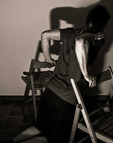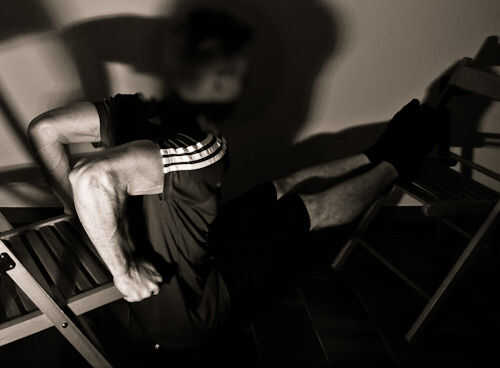 Para este ejercicio usted necesitará utilizar barras paralelas o algo similares, como la parte trasera de las sillas muy sólidas y estables o sólidos caballetes (ver foto). Asegúrese de que está trabajando en algo que no nos ha llovido y no se salga y caiga.