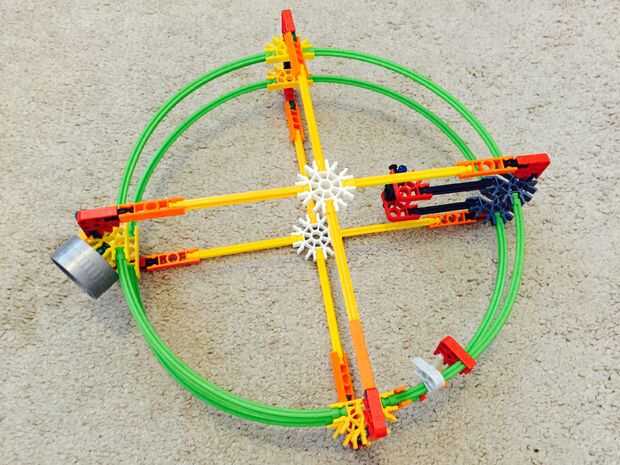 Este elemento sorprendentemente simple por primera vez en mi máquina evolución de la bola aterrizará en las barras azules. Entonces, toda la estructura gire 360 grados antes de soltar la bola.