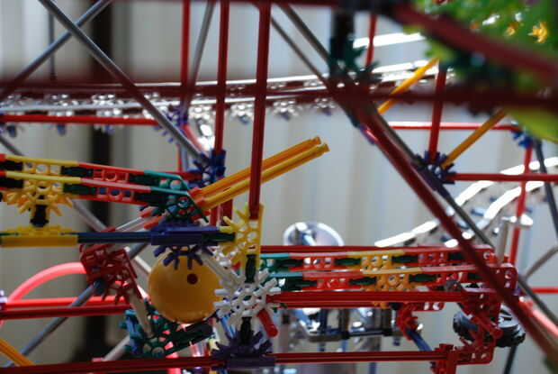 Cuando una bola se queda en la "cesta mini", otra bola rodará en amarillo varillas desde arriba que están conectados a la "cesta mini" lanzando una bola tras otra con la ayuda de rutas regulares con el transporte de las bolas. (Explicado lo mejor posible en el video, lo siento si este no haga clic en)