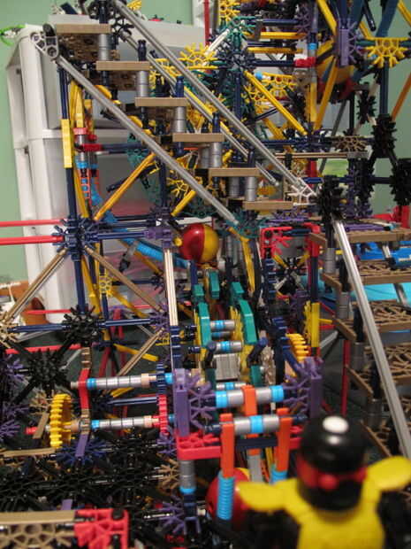 Cuadro 9 muestra un ascensor construido por Sorunome, que clasifica como un elevador de rueda pequeña. Esto estaba en su máquina de la bola distopía, que fue construido después de mi primera versión de la elevación de la rueda pequeña. Sin embargo, es diferente a la original ya que no utiliza tubos y la rueda se construye diferentemente. Las instrucciones se pueden encontrar aquí.