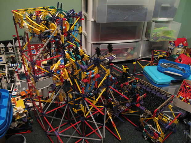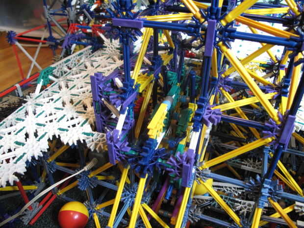 En Ciudadela, había reconstruido esta elevación y mejorado, como lo que es no usar la tubería y hacer que la rueda se vea mejor. Hay 3 apilados para arriba, y utilizan flexi-barras en azul separadores (separadores plata trabajaría también). No tiene un vídeo de estos, ya que la máquina de la bola todavía está en construcción. Fotos 1-6 de arriba son de