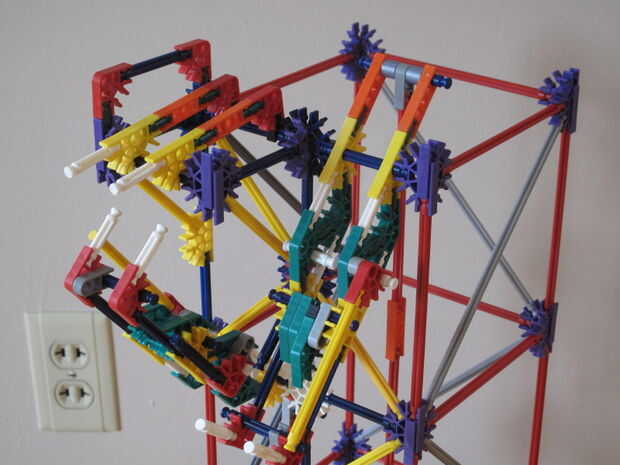 Sorunome construyó un elevador de brazo desplazamiento para su máquina de la bola, Apocalipsis, que se muestra en la figura 5. Su versión es alto 8 brazos. El cuadro 6 demuestra uno construido por koolcoasterkid, que es alto 6 brazos. Estas dos versiones tuvieran que ser modificado de diferentes maneras para hacerlos funcionar, más información en la se puede encontrar aquí.