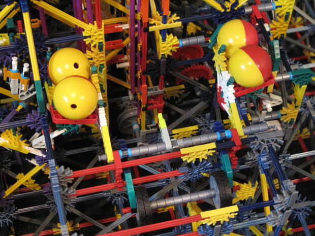 aquí están las instrucciones sobre cómo hacer la máquina más pequeña de la bola en instructables.Paso 1: Lista de piezasLista de piezasBarras deRojo - 1Amarillo - 12Azul - 26Blanco - 12Verde - 30ConectoresAzul - 15Amarillo - 10Violeta - 27Rojo - 2Gri