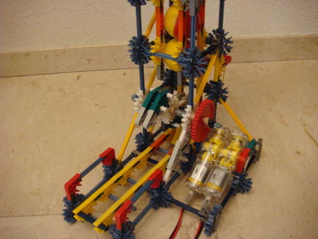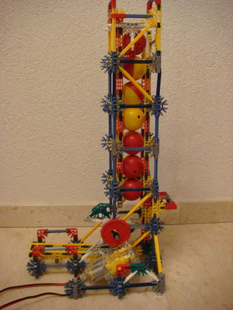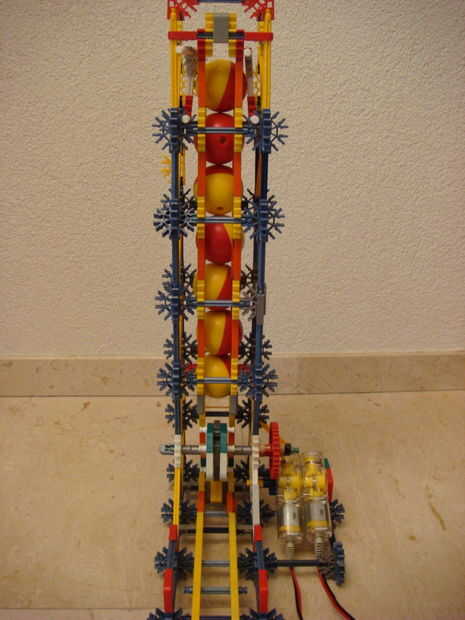 Aquí hay un video. Además, él construyó una máquina de bolas mediante esta elevación, llamada