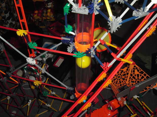Este es el motor de aire y tubo de elevación de la KVG torre grande de la bola del aire. Sólo funciona con las nuevas bolas, y requiere dos bolas con el fin de levantar una bola a través del tubo. Este es uno de los ascensores de KVG más rápidos, en cuanto a que tarda una bola llegar a de la parte inferior hacia arriba. Gracias a Sorunome para tomar fotografías de esta elevación.