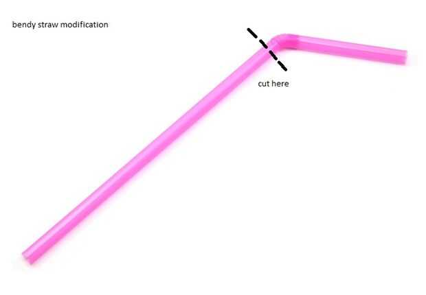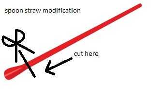 Pajas: básicamente todo lo que necesitas hacer es desenvolverlo. así de simple. Sin embargo, si utiliza una cuchara o paja bendy, necesitará cortar parte de la paja. Consulte las fotos terriblemente editadas por donde cortar.