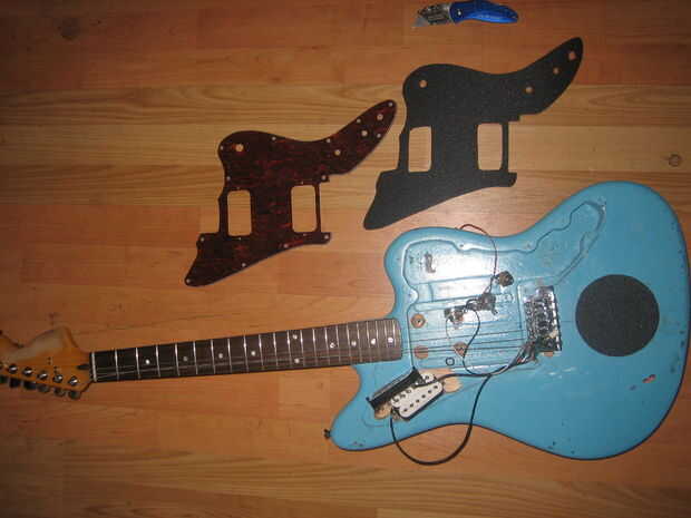 Así que aproveché nuevo apart, quitó todo lo del golpeador (debe haber hecho al principio), remontar el golpeador en la cinta de agarre, rastrear una lata de café en la cinta de agarre (para cubrir la ruta del fea en el cuerpo) y recortar con un cúter.