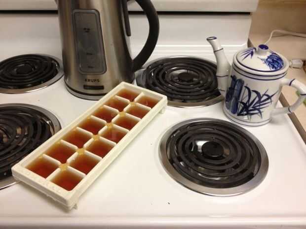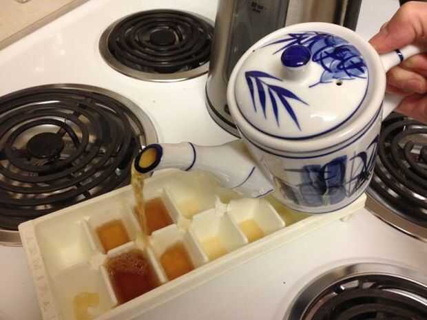 Nota: El té mancha un cubito de hielo de plástico. Puede quitar la mancha por adición de una tapa de blanqueador por aproximadamente 4 tazas de agua y llenar la bandeja del cubo de hielo con la mezcla de lejía durante 2-5 minutos. También puede utilizar la mezcla de blanqueador para quitar las manchas de las tazas de café. Deseche la mezcla de la lejía el fregadero y lavar con abundante agua. Enjuague la bandeja del cubo de hielo (o copas) con abundante agua y luego lave con tu método regular.