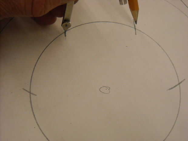 Paso 1: Decidir sobre el diámetro. Abierto el compás para el radio del diámetro, trace un círculo. Marcar el punto central.