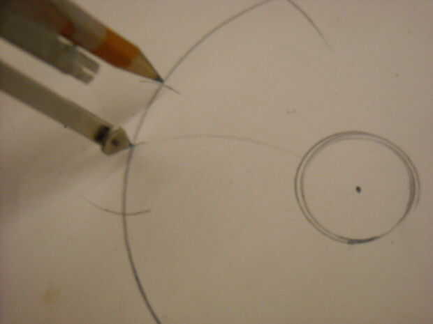 Paso 2: Utilizando el radio (no abrir o cerrar el compás) poner el punto del compás en el círculo y arco alrededor hasta que golpea el círculo en 2 puntos... Marque dos puntos.