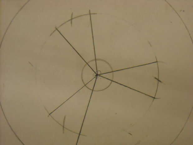 Paso 3: Poner el punto del compás en una de las líneas que marcó... Gire el extremo del lápiz hasta que golpea el círculo... dibuja una corta línea... Mantenga moviendo el punto a las líneas que trazaste y haciendo arcos hasta que el círculo se divide por igual.