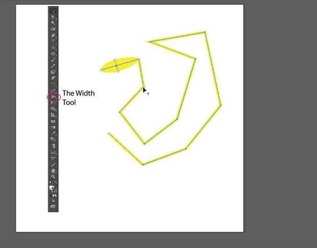 La herramienta de ancho es única, solo funciona con el movimiento/contorno de una forma, una forma de herramienta de pluma/línea, o de una herramienta de línea. La herramienta de ancho es en el panel de la barra de herramientas de illustrator.